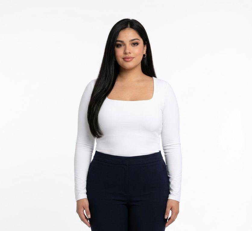 Chubby By P Square Neck White Bodysuit