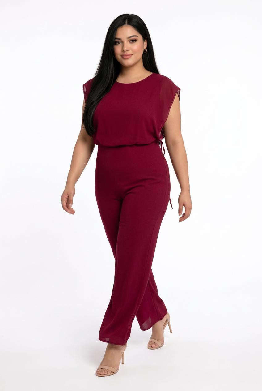 Plus Size Burgundy Classic Jumpsuit