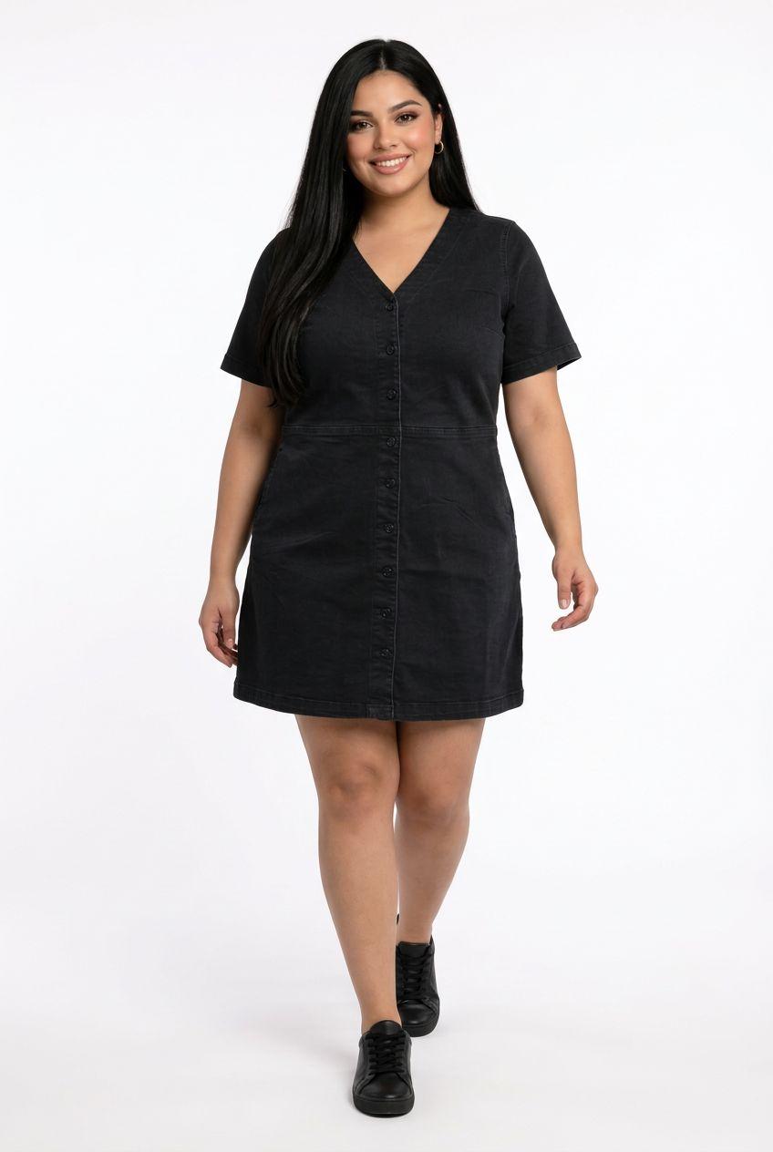 Plus Size Buttoned Denim Dress