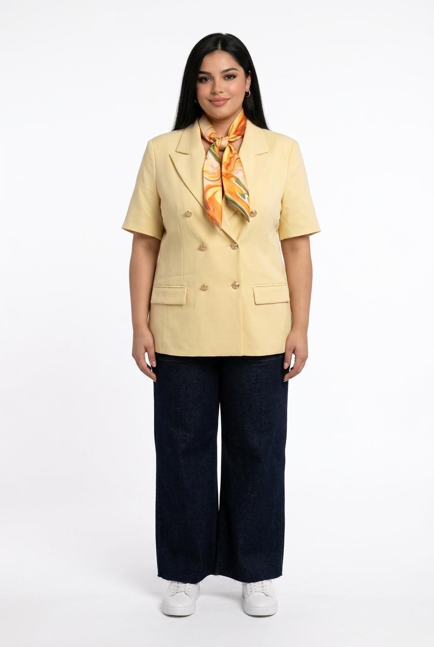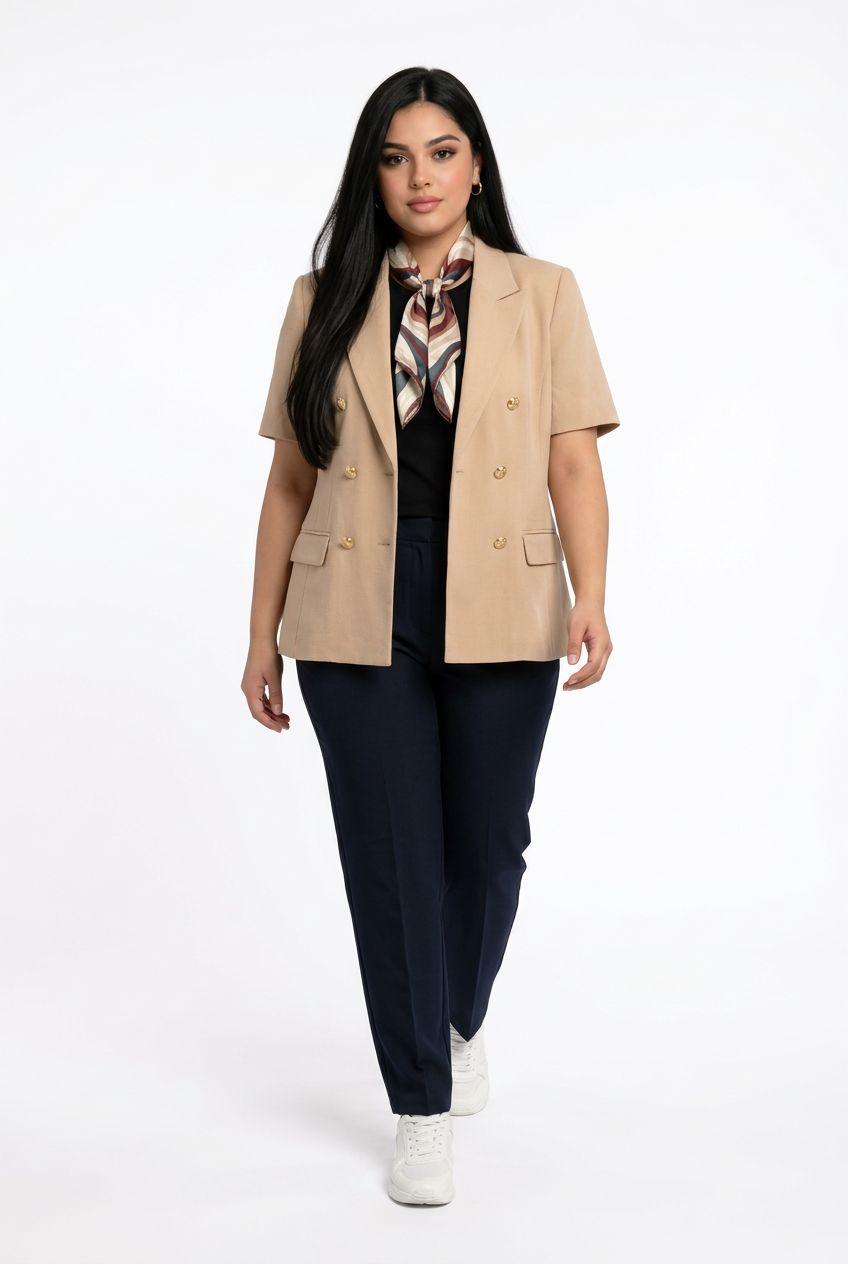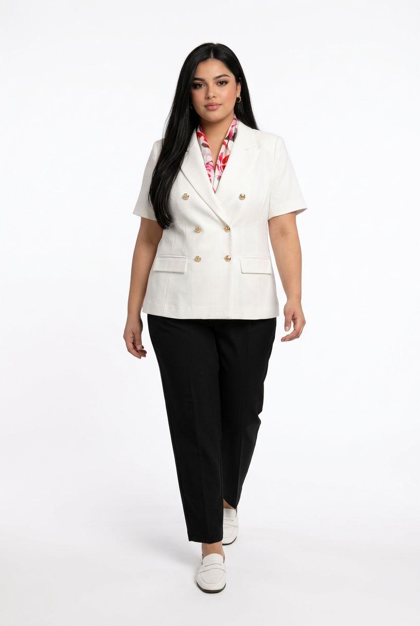 Plus Size Half Sleeve Buttoned Blazer