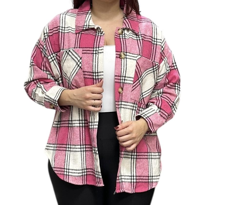 Plus Size Square Pink Buttoned Jacket
