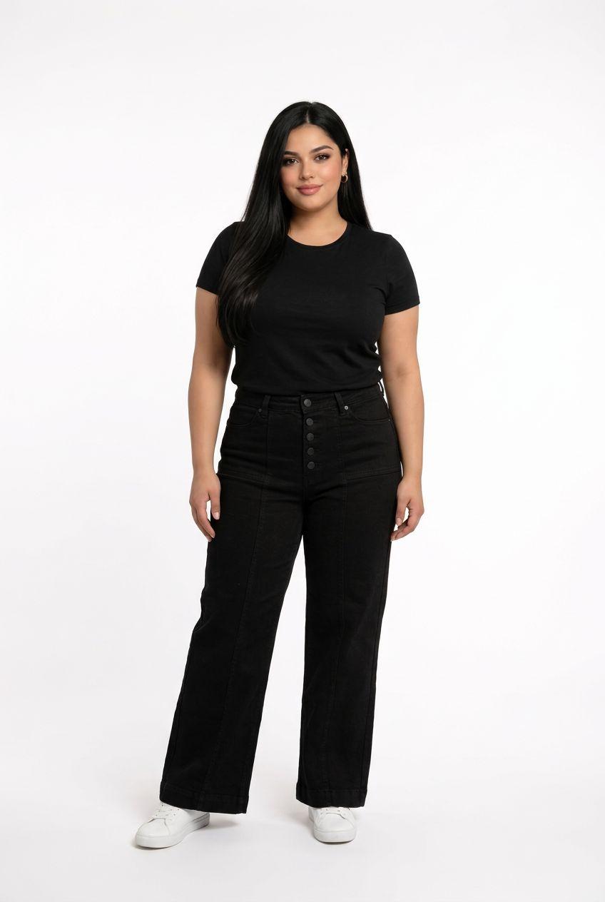 Plus Size Wide Leg Buttoned Jeans
