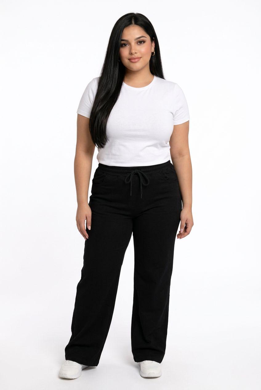 Plus Size Wide Leg Rubbon Jeans
